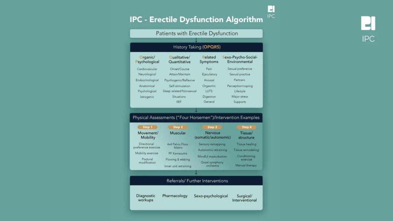 Understand the relevant anatomy and physiology principles behind why the groundbreaking treatment techniques taught at IPC work. Apply techniques such as the pelvic floor Kamasutra, the mindful masturbation and the self-generating NO technique to help your patients regain a strong erection and not have pain during ejaculation.